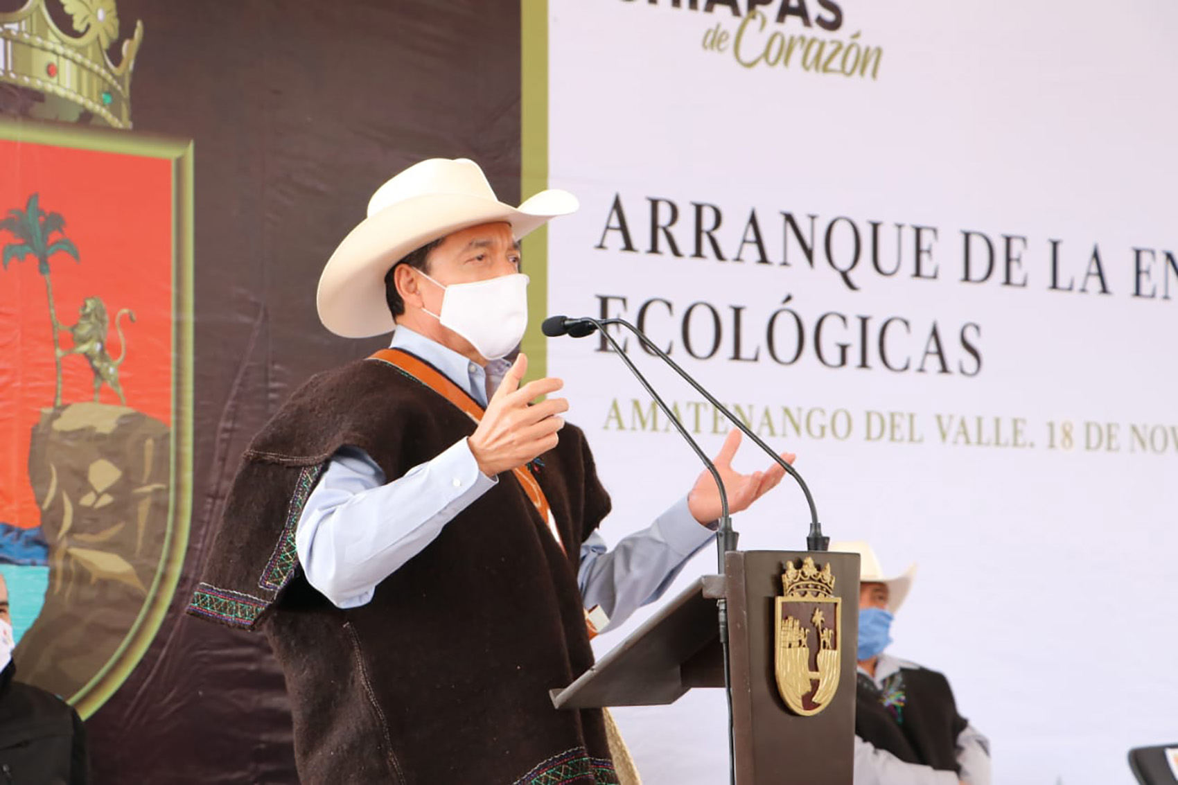 Luego de agradecer la entrega de estufas ecológicas, que contribuirán al cuidado de la salud y del entorno, el alcalde de Amatenango del Valle, Juan Bautista Gómez, sostuvo que en el municipio se mantienen las medidas preventivas contra el COVID-19, y destacó que aunado al fortalecimiento policial, se privilegia el diálogo y el respeto a los usos y costumbres de pueblos y comunidades para que haya paz y armonía.