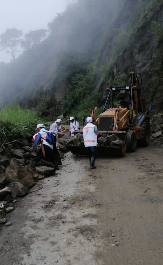 En el municipio de El Bosque se registra un derrumbe en el tramo carretero Puerto Cate-Huitiupán; con el apoyo de la Comisión de Caminos se realiza limpieza y retiro de material pétreo. Existe paso vehicular.