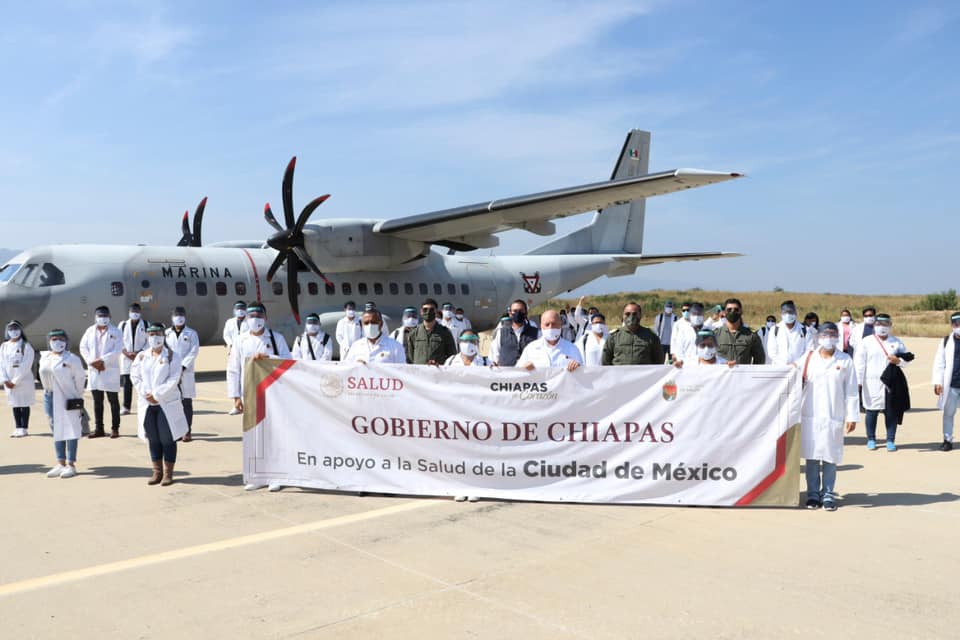El gobierno de Chiapas envió este fin de semana a 50 profesionales de la salud a la Ciudad de México para enfrentar la pandemia en los diferentes hospitales “que se encuentran saturados con pacientes”.