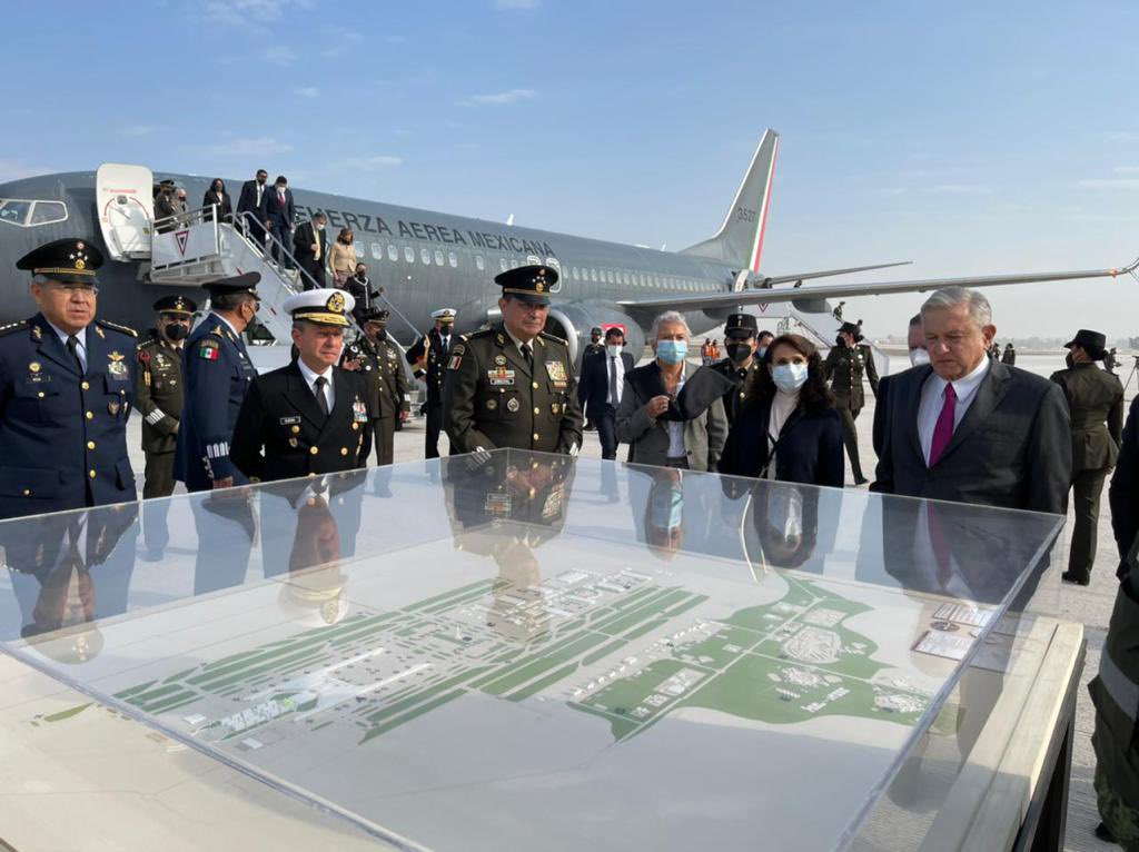 En su conferencia matutina de este miércoles, AMLO señaló que las obras van por buen camino y muestra de ello es la inauguración que hoy hará de la base militar a un costado de este espacio. Las cuales se espera concluyan el 21 de marzo de 2022.
