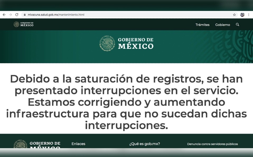 El mensaje debido a la saturación de registro ha presentado “interrupciones en el servicio, estamos corrigiendo y aumentando infraestructura para que no sucedan dichas interrupciones”, se lee en la página.