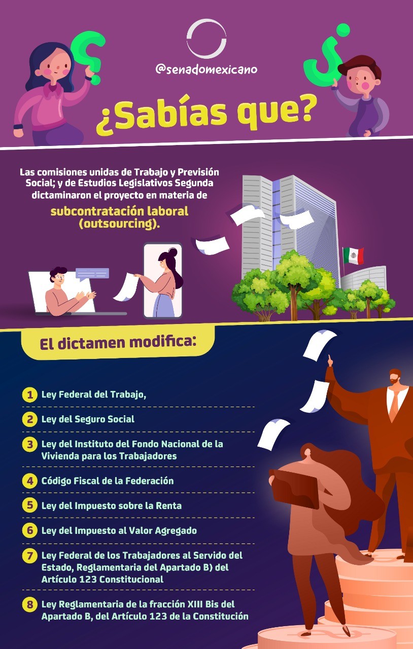 📌 #HoyEnElSenado se aprobó legislar a favor de los derechos de las y los trabajadores, a través de reformas a 8 leyes en materia de subcontratación u outsourcing.