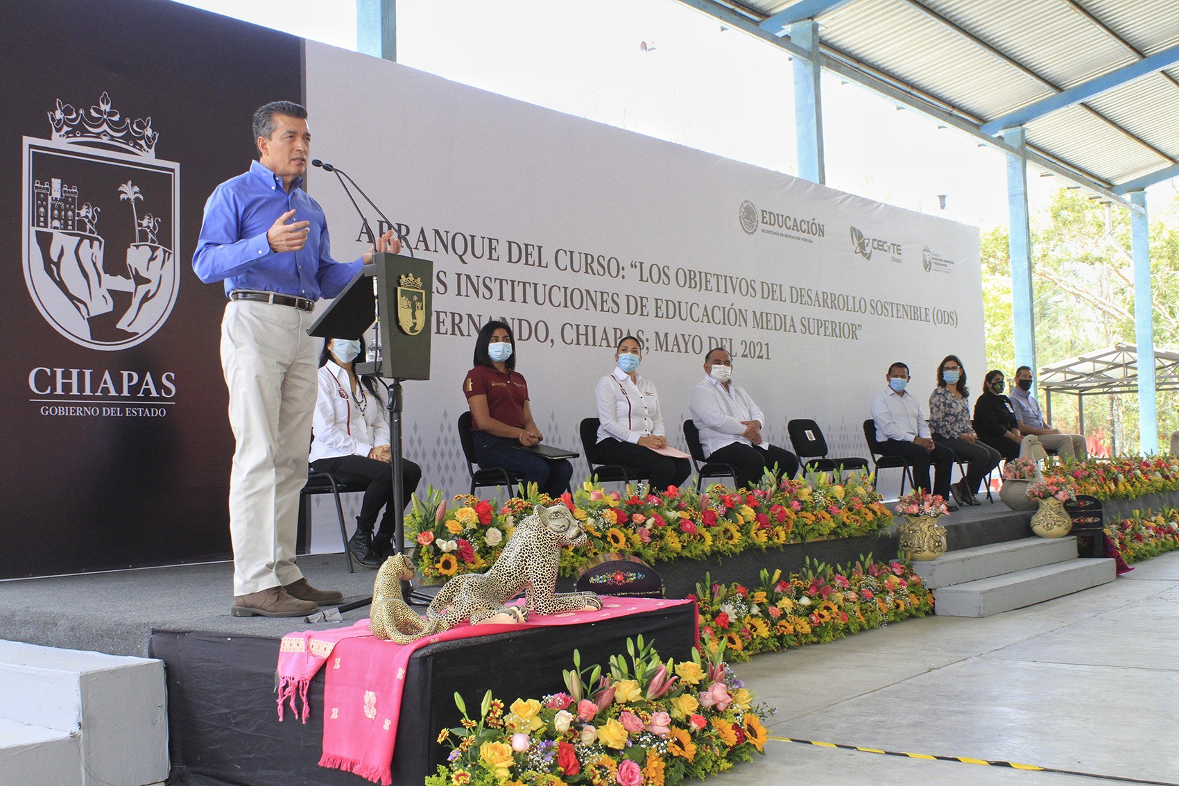 Al respecto, el gobernador Rutilio Escandón Cadenas refirió que este curso impulsa el beneficio integral de la sociedad, sobre todo con el cuidado del ambiente que contribuya a conservar la riqueza natural de Chiapas, ya que abordará el cambio climático, mostrando la interconexión entre el medio ambiente, la prosperidad y el bienestar social. Agregó que el propósito es llevar lo aprendido a la práctica, pues el fin de la educación es lograr un mejor futuro.
