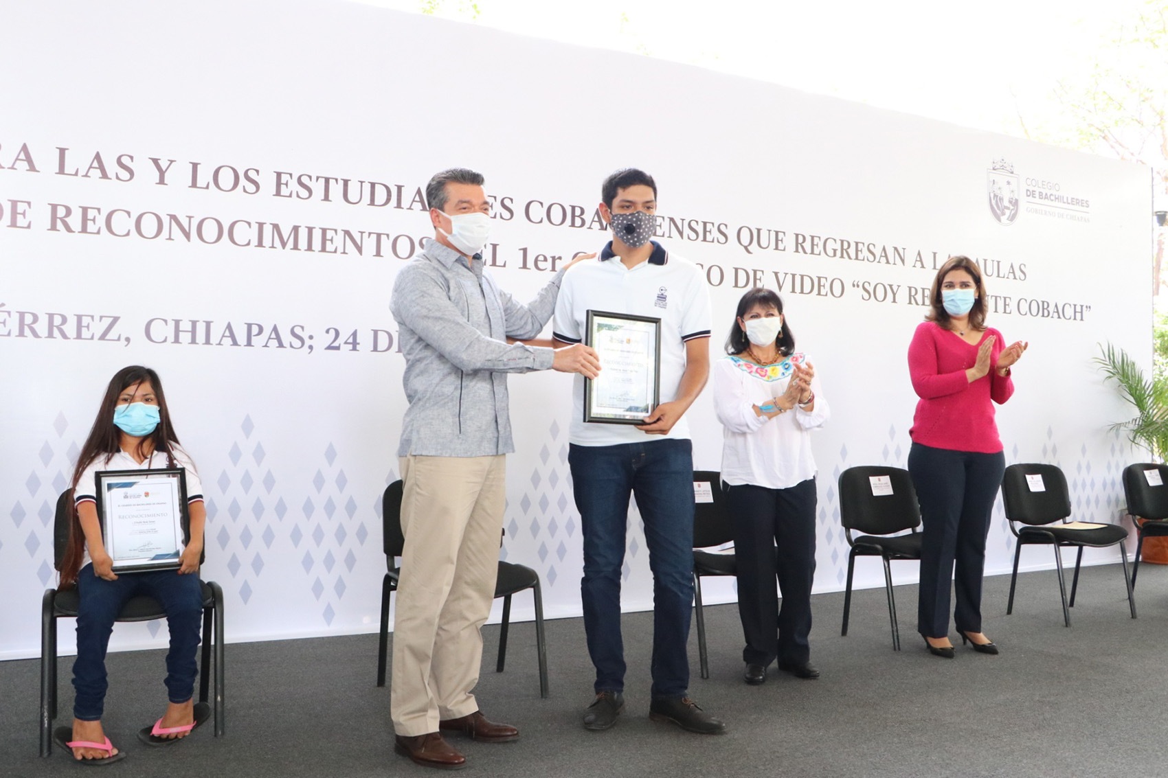 Desde las instalaciones del Cobach 33 en Tuxtla Gutiérrez, el gobernador Rutilio Escandón Cadenas mencionó que la resiliencia acompañará a lo largo de su vida a quien la practique, por ello, dijo que no se dejará de desarrollar este tipo actividades que ayuden a la niñez y juventud a enfrentar distintas situaciones, y felicitó a quienes participaron en este concurso mostrando su talento para llevar un mensaje positivo a sus compañeras y compañeros.