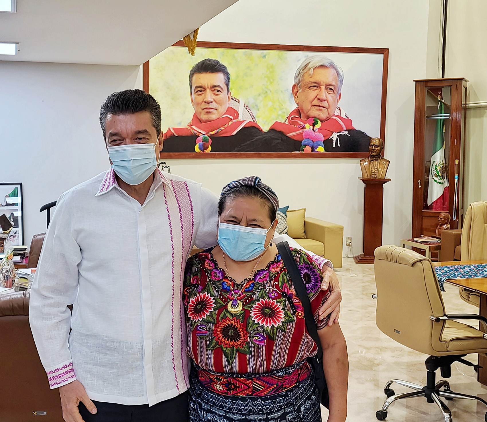 El gobernador Rutilio Escandón Cadenas sostuvo una reunión con Rigoberta Menchú Tum, Premio Nobel de la Paz, a quien reconoció por su incansable lucha a favor de la dignidad, defensa, respeto y cumplimiento irrestricto de los derechos humanos de los pueblos indígenas y de los sectores más vulnerables.