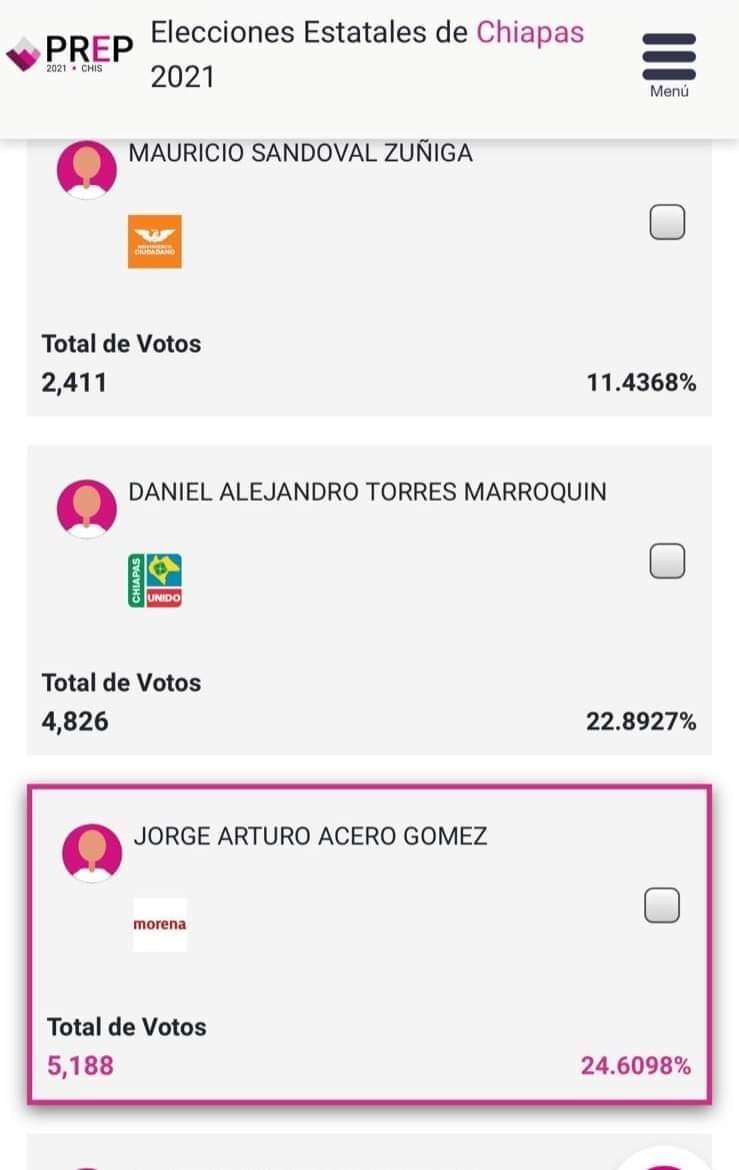 El Programa de Resultados Electorales Preliminares (PREP) ratificó el triunfo de Morena en Berriozábal, por lo que Jorge Acero será Presidente Municipal en el período 2021-2024.