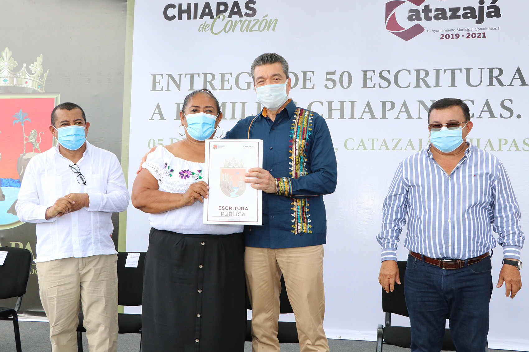 Tras 20 años de lucha, un total de 50 familias del Fraccionamiento “La Laguna”, en el municipio de Catazajá, fueron beneficiadas con escrituras públicas que recibieron de manos del gobernador Rutilio Escandón Cadenas, quien celebró que esta demanda añeja hoy esté cumplida, pues les dará certeza jurídica sobre su patrimonio, para que nadie pueda arrebatárselos.