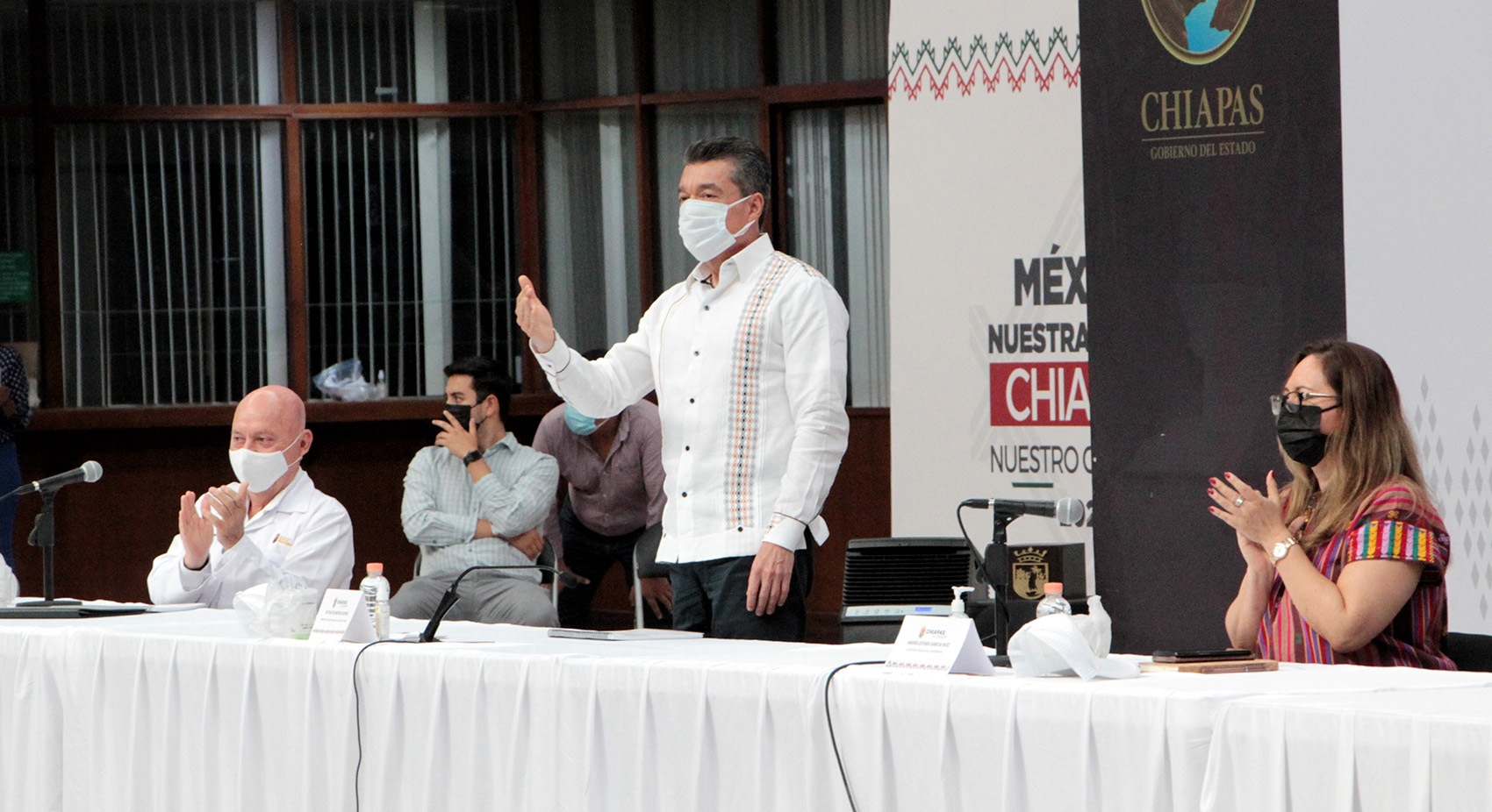 Respecto a la pandemia, convocó a vacunarse y continuar en la misma ruta de autocuidado, sobre todo por la presencia de la variante Delta, una cepa altamente contagiosa, al tiempo de reconocer la actitud del pueblo, la labor del personal de salud y el trabajo de las autoridades federales, estatales y municipales, lo que ha permitido que Chiapas sea la entidad que, prácticamente todo el año, ha permanecido en color verde, con la tasa más baja de casos y defunciones a nivel nacional.