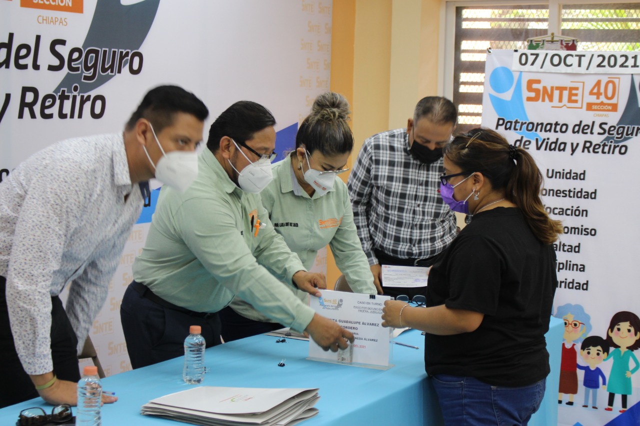 El Patronato del Seguro de Vida y Retiro de la sección 40 del Sindicato Nacional de Trabajadores de la Educación realizó la primera entrega de cheques a beneficiarios de docentes que han perdido la vida durante la pandemia por covid-19.