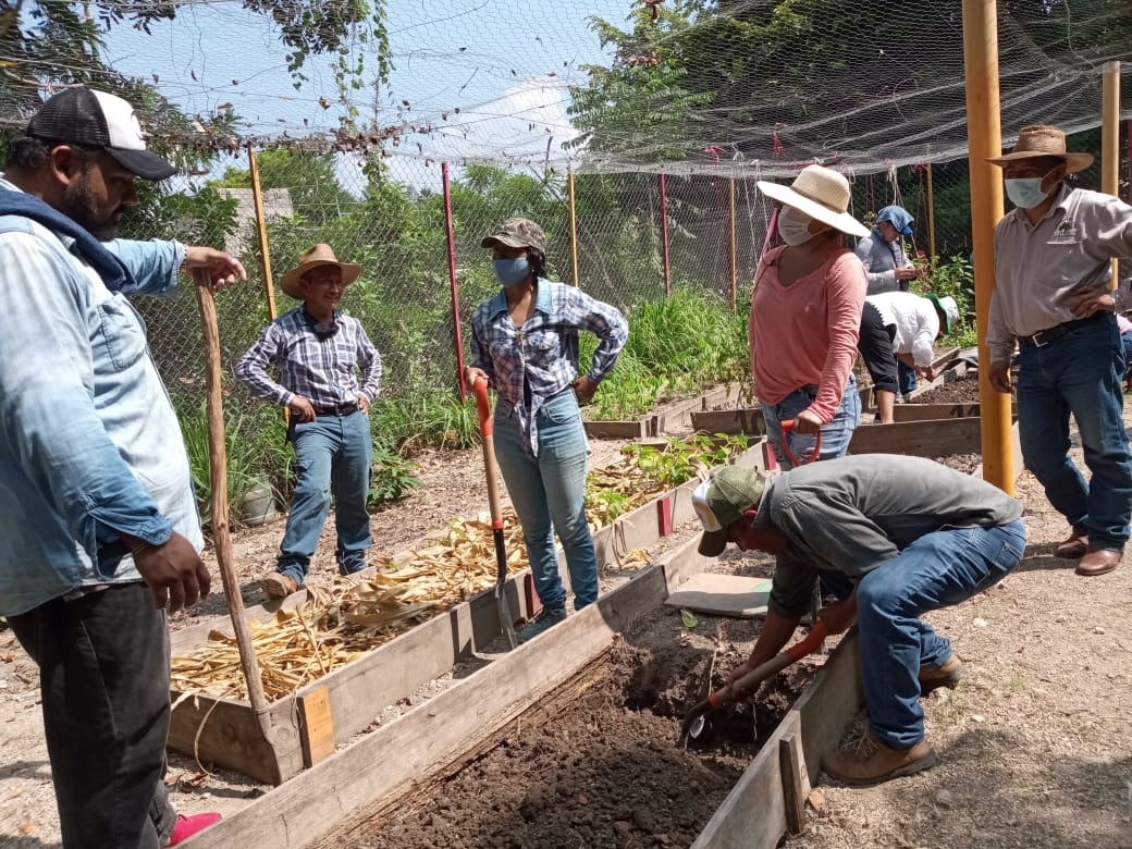 Además de comprender las diferencias entre la agricultura moderna y la agricultura orgánica e identificar los componentes del suelo, en la capacitación también realizaron actividades prácticas como la doble excavación, elaboración de composta, siembra cercana, construcción de semilleros y elaboración de repelentes naturales a plagas y enfermedades.