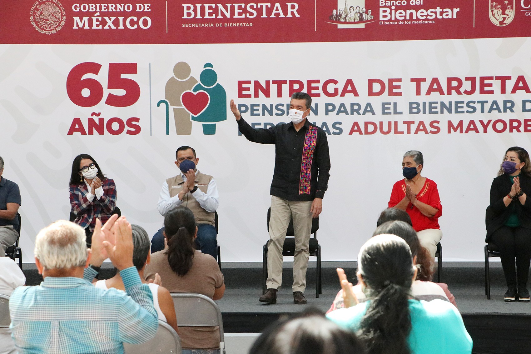 El gobernador Rutilio Escandón Cadenas y el delegado federal de Programas Integrales de Desarrollo en Chiapas, José Antonio Aguilar Castillejos, encabezaron el inicio del Operativo de Entrega de Tarjetas del Programa Pensión para el Bienestar de las Personas Adultas Mayores, que en esta primera etapa incorporó a 45 mil 312 nuevos beneficiarios, por lo que Chiapas contará con un padrón de 340 mil 445 personas mayores de 65 años pensionadas.