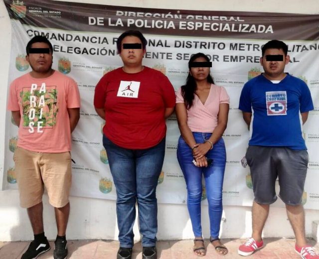 Los detenidos responden a los nombres de Julio José “N” de 20 años, Ramón “N” de 24 años, José Alberto “N” de 23 años y Nayeli “N” de 28 años.