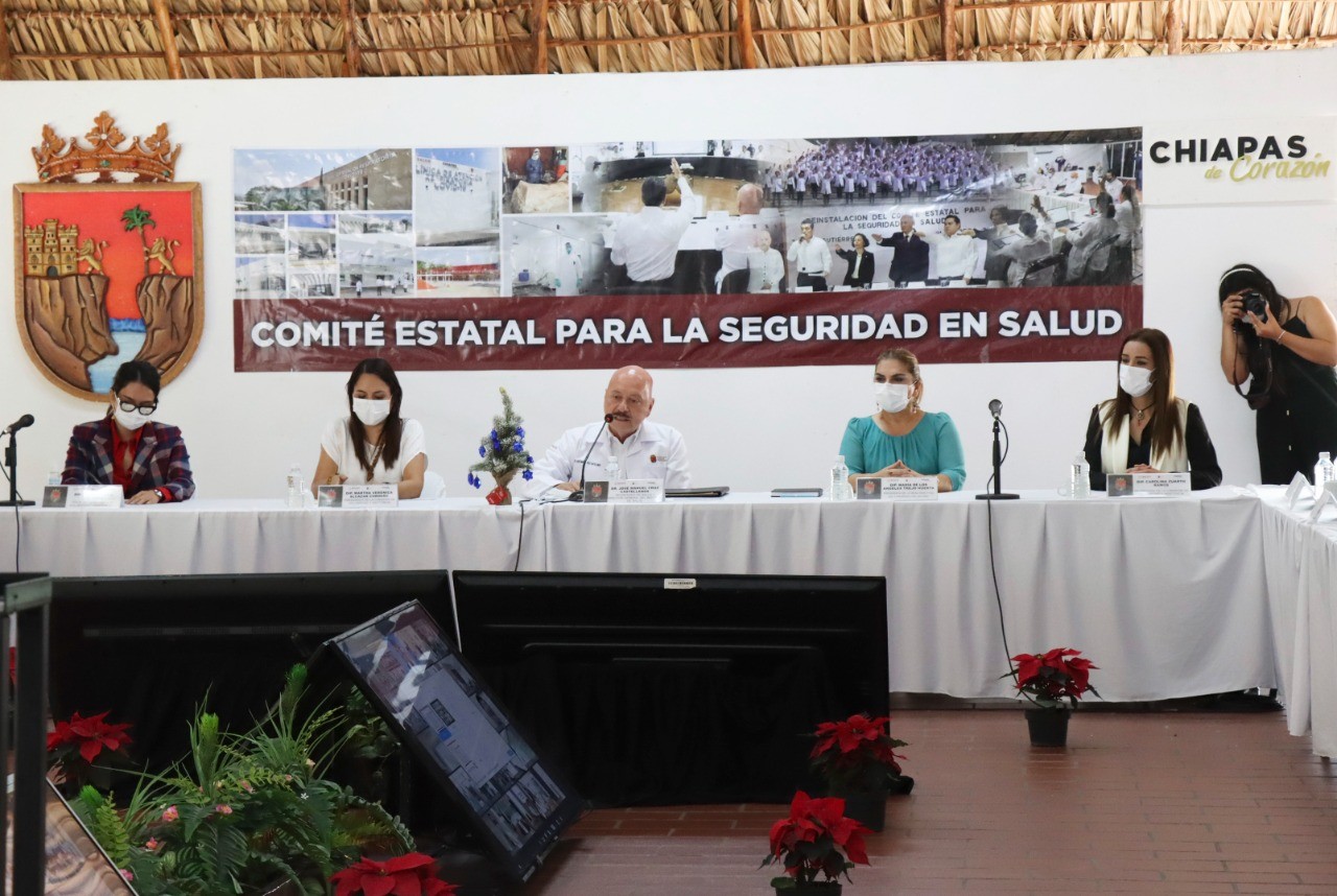 Al encabezar la reunión número 525 del Comité Estatal para la Seguridad en Salud, en compañía de la presidenta de la Mesa Directiva del Congreso del Estado, María de los Ángeles Trejo Huerta, el doctor Pepe Cruz resaltó que en ocupación hospitalaria, Chiapas registra sólo el dos por ciento, con tres pacientes, dos en camas generales y uno en cama con ventilador, lo que refleja la importancia de aplicarse la vacuna anticovid, que ayuda a prevenir casos graves y hospitalizaciones por esa enfermedad respiratoria.
