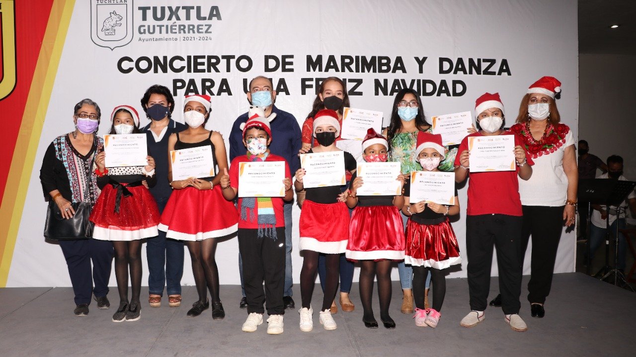 En el marco de la tradicional temporada decembrina, el Instituto Tuxtleco de Arte y Cultura de Tuxtla Gutiérrez, a través del Museo de la Marimba “Zeferino Nandayapa Ralda” y la Casa de la Cultura “Luis Alaminos Guerreros”, llevaron a cabo el Concierto Navideño de Marimba y Danza, contando con la participación de niñas, niños y jóvenes que demostraron su talento con la ejecución de sus notas musicales y bailes con mensajes navideños.