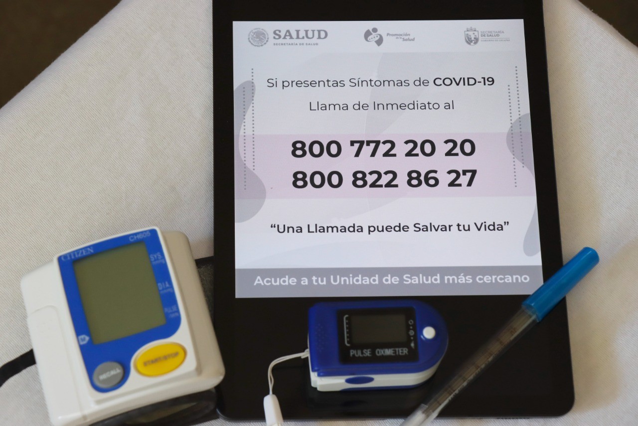 Dijo que ante la aparición de posible sintomatología COVID, hay que notificarlo a las líneas de atención con cobertura estatal 800 772 2020 y 800 822 8627, donde personal capacitado brindará la orientación pertinente y si el caso lo amerita, una brigada médica especial acudirá al domicilio para realizar la valoración correspondiente y otorgar el tratamiento.