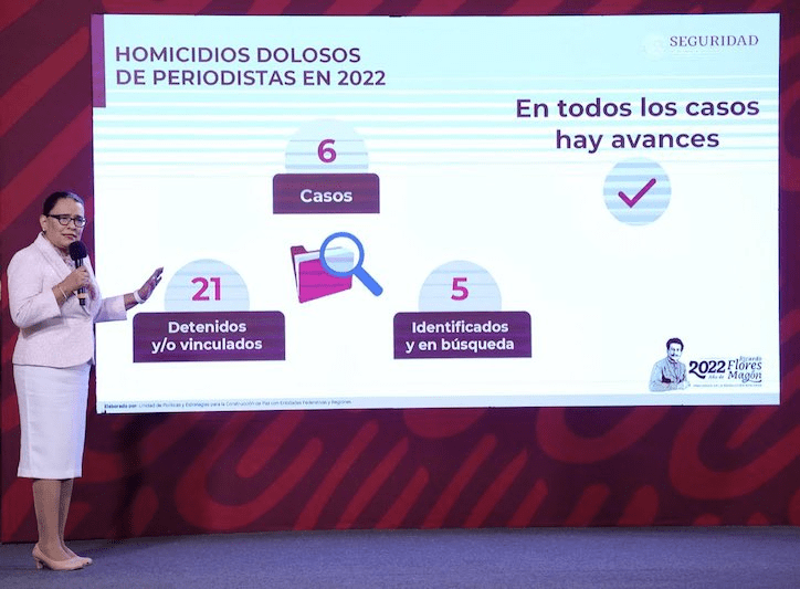 Lo anterior, fue revelado por la secretaria de Seguridad y Protección Ciudadana, Rosa Icela Rodríguez, cuando presentaba los resultados de la estrategia de cero impunidad por parte del gobierno federal.