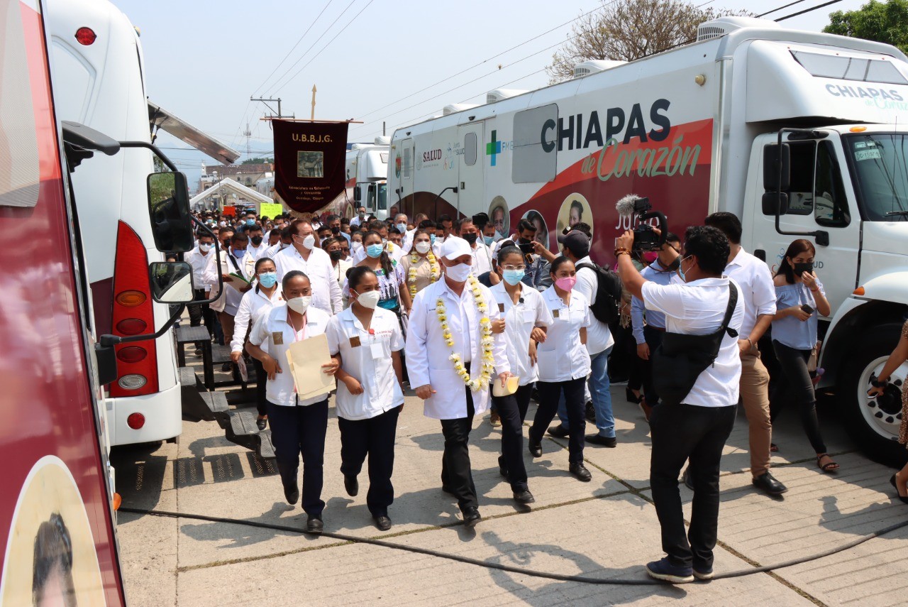 Puntualizó que para reforzar la salud en la población de Ocosingo, durante dos días se instalará un convoy de la salud con nueve unidades médicas móviles, las cuales ofrecerán los servicios de consulta externa y odontológica, estudios de laboratorio, densitometría, ultrasonido obstétrico, electrocardiograma, mastografía, radiografías, ambulancia de traslado de pacientes y medicamentos.
