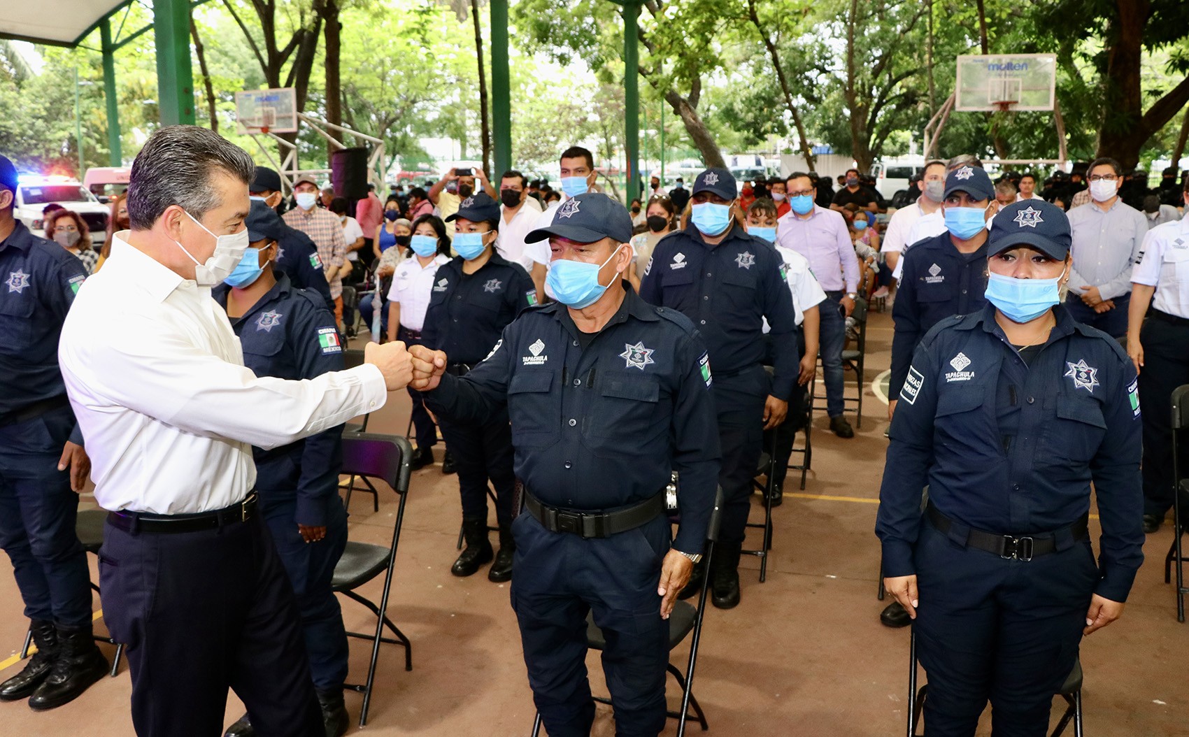 El mandatario enfatizó que la seguridad es el primer paso para el bienestar y progreso, por ello refrendó su compromiso de seguir invirtiendo en este rubro, con el objetivo de que Tapachula siga contando con una corporación policial equipada, capacitada y preparada, pues es fundamental para realizar su labor de manera eficaz, conforme a las normas jurídicas, con respeto a los derechos humanos y privilegiando la protección de mujeres y niñas.