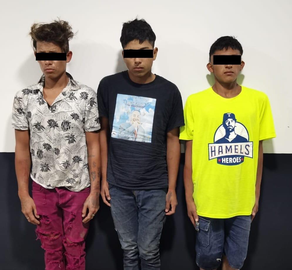 Resultado de patrullajes preventivos en la colonia Ruiz Señores del municipio de Tapachula, policías estatales preventivos detuvieron a Diego Vicente “N”, Luis Manuel “N” y Mario Luis “N”, a quienes se les aseguró 45 envoltorios pequeños con al parecer marihuana, un arma de fuego calibre 38 especial y dos pistolas más de juguete, así como tres motocicletas con reporte de robo.