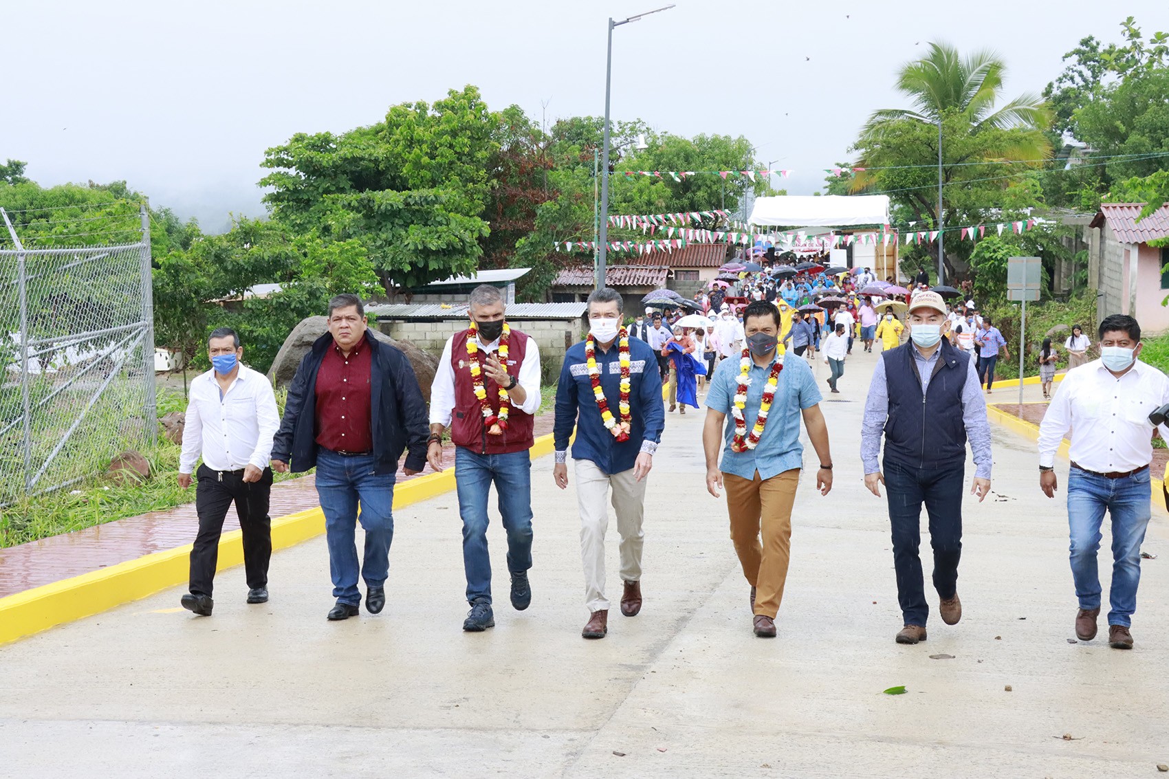 En otro momento, el mandatario puso en marcha la pavimentación integral con concreto hidráulico de calles en la localidad La Flor de este municipio, donde destacó que de esta forma se brinda justicia social a las y los habitantes de dicha comunidad que por mucho tiempo transitaban en caminos lodosos e inseguros; por ello, les pidió cuidar la vialidad de más de un kilómetro, en la que se invirtió más de 9.5 millones de pesos y responde a una necesidad apremiante de facilitar la circulación vehicular, con alumbrado público, drenaje pluvial, banquetas y guarniciones, a fin de no poner en riesgo a los peatones.