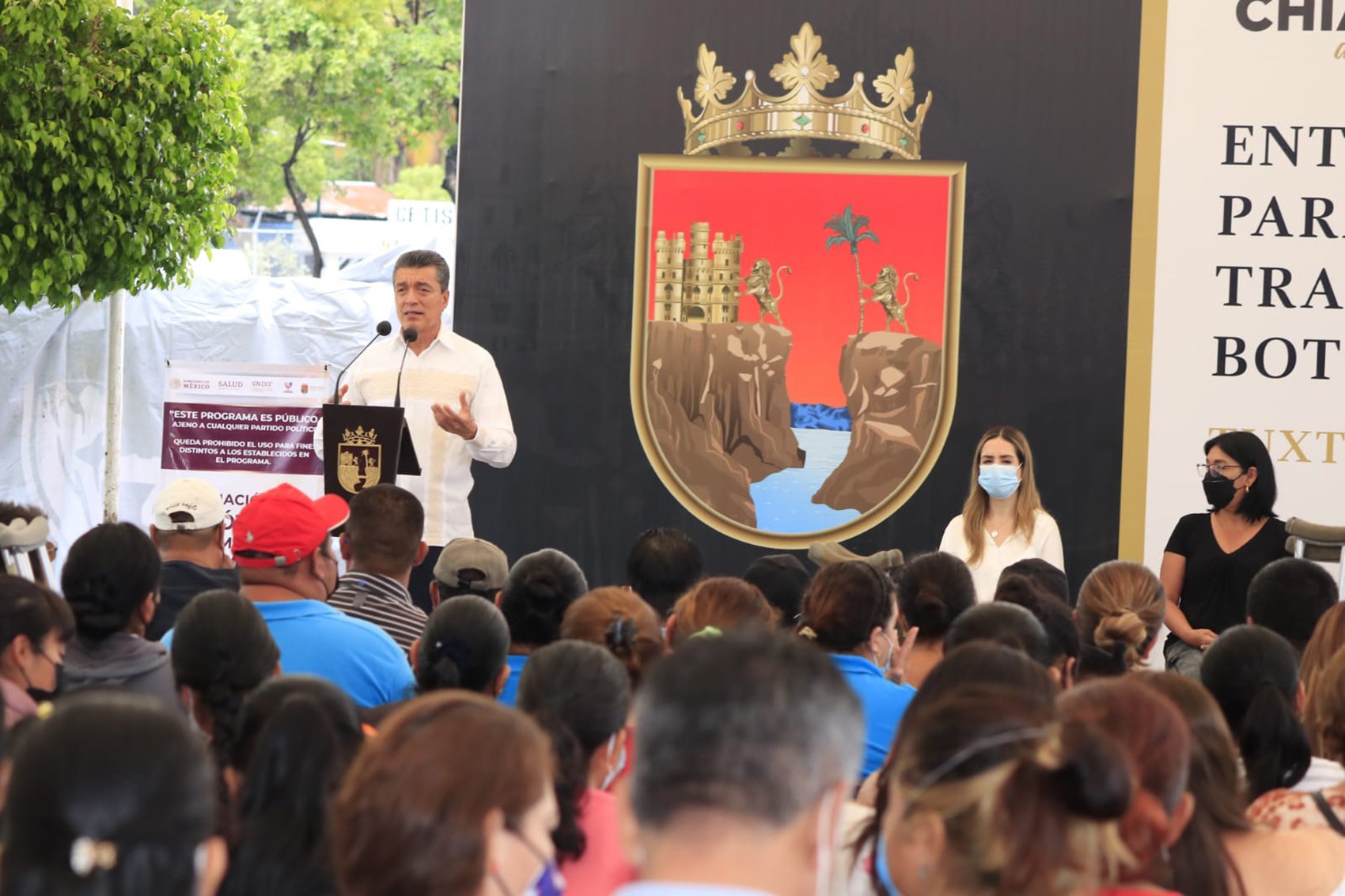 Durante la entrega de medicamentos especializados para trastornos neurológicos, prótesis inferiores y superiores, y la aplicación de toxina botulínica, en beneficio de población en situación de vulnerabilidad, el gobernador Rutilio Escandón Cadenas sostuvo que su gobierno seguirá invirtiendo y sumando esfuerzos con las diferentes instancias, para conseguir los tratamientos y atender la salud de la población, sobre todo de los sectores más necesitados y de quienes no tienen un régimen de seguridad social.