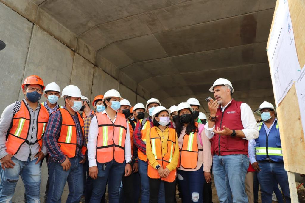 En compañía de estudiantes universitarios de la carrera de Ingeniería Civil del Tec NM Campus Cintalapa, Ángel Torres destacó que este paso elevado permitirá mayor conectividad, mejor movilidad e imagen urbana, pero sobre todo un mejor desahogo vehicular en la zona, rumbo al centro del país.