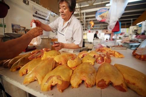 En los mercados públicos de Tapachula como por ejemplo, Mecado san juan o sebastian escobar, el pollo en canal se vende entre los 190 y 220 pesos de acuerdo al tamaño y en los supermercados el precio del pollo tipo americano, oscila entre los 44 y 55 pesos.