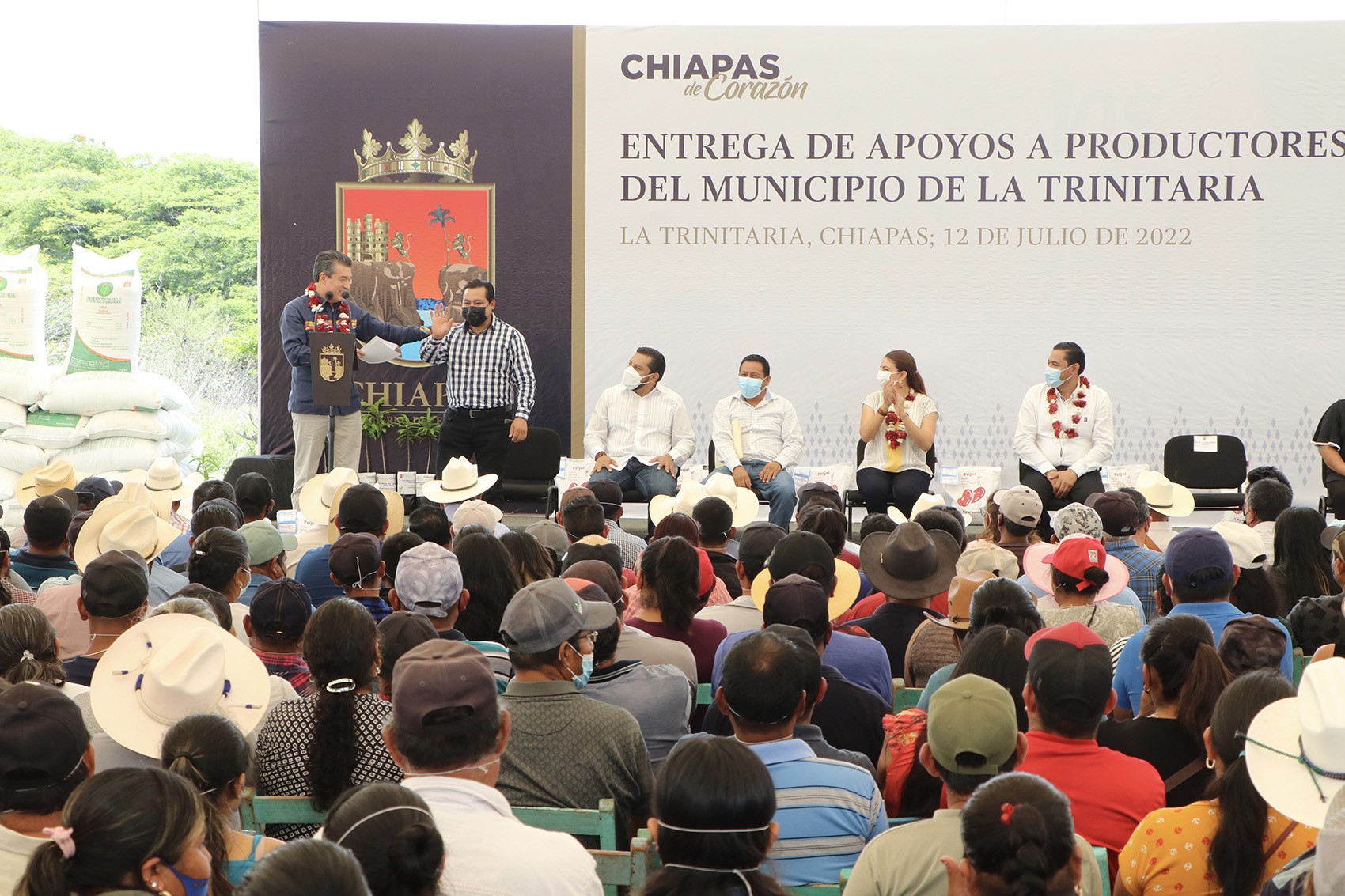 En la entrega de insumos a productores agrícolas del municipio de La Trinitaria, el gobernador Rutilio Escandón Cadenas refrendó su compromiso con las familias del campo porque con su labor contribuyen al crecimiento de sus municipios y de todo Chiapas, por ello, aseguró que continuará apoyando de forma directa a la gente que realmente trabaja la tierra.