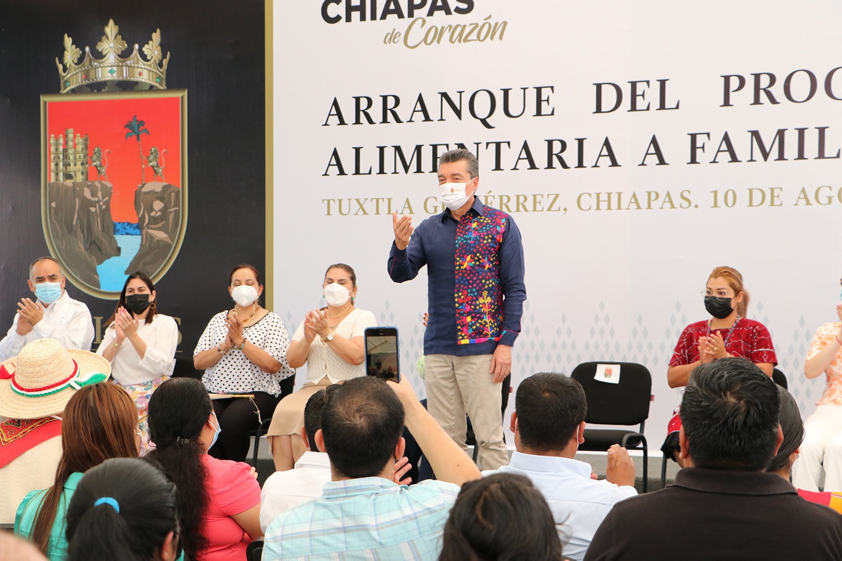 El gobernador Rutilio Escandón Cadenas encabezó el banderazo de inicio de distribución y entrega de más de 70 mil paquetes alimentarios para la atención de la población, sobre todo de los sectores en condiciones de mayor vulnerabilidad de la entidad, especialmente en 34 municipios más pobres, donde sostuvo que, ahora más que nunca, su gobierno invierte los recursos públicos en el bienestar y en el cumplimiento de los derechos humanos de las personas, como es el acceso a una alimentación sana y nutritiva.