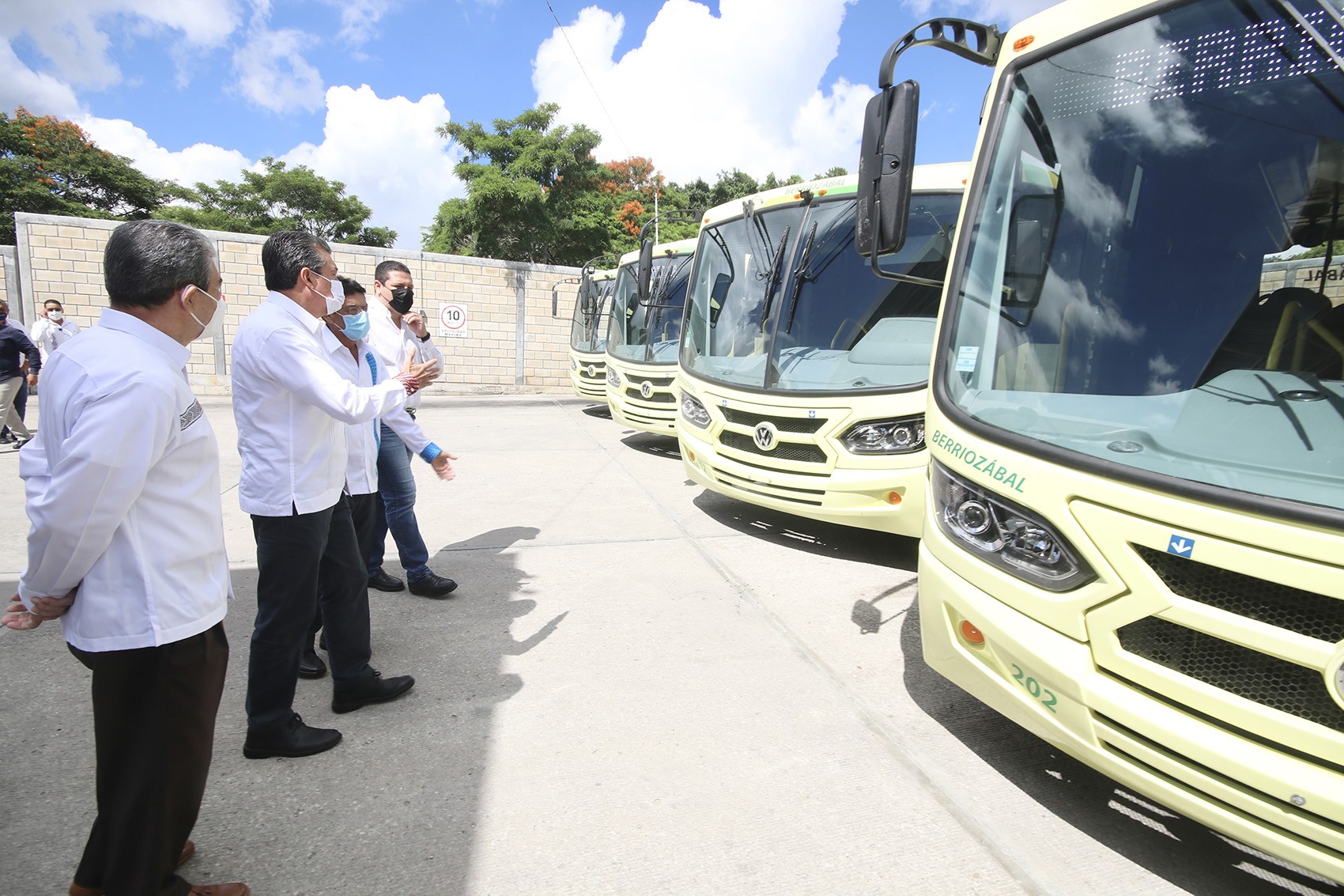 Al dar el banderazo de salida a la nueva flota vehicular de la ruta Berriozábal-Tuxtla, el gobernador Rutilio Escandón Cadenas reconoció la suma de esfuerzos de los transportistas federales del municipio de Berriozábal en beneficio de más de 64 mil personas que podrán trasladarse en un transporte seguro, digno, con calidad en el servicio y menos daño al medio ambiente.