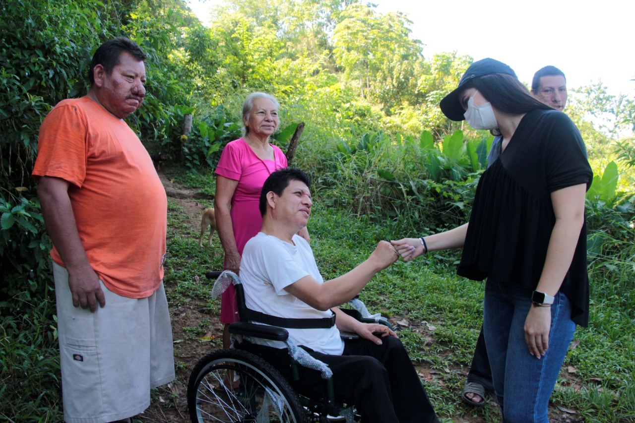 Acompañada de la Coordinadora de Atención a Personas con Discapacidad del organismo, María Ángela Yannini Villatoro, Rubiera Urbina hizo la entrega al señor Santiago Vázquez Ledezma, en el ejido 21 de Marzo.