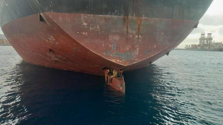 Tres migrantes, que se encontraban en la pala del timón de un barco, fueron rescatados por Guardacostas de España. Dicho barco, llegó a las Islas Canarias desde Nigeria.