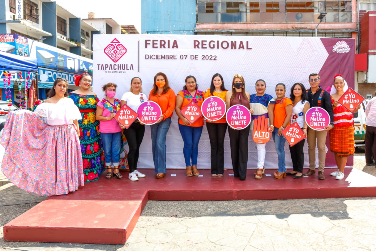 Tapachula, Chiapas.- La presidenta municipal de Tapachula, Rosa Irene Urbina Castañeda y la secretaria de Igualdad de Género del Estado, María Mandiola Totoricaguena, pusieron en marcha la Feria Regional Tianguis Navideño, en el marco de los 16 días de activismo contra la violencia hacia las mujeres.