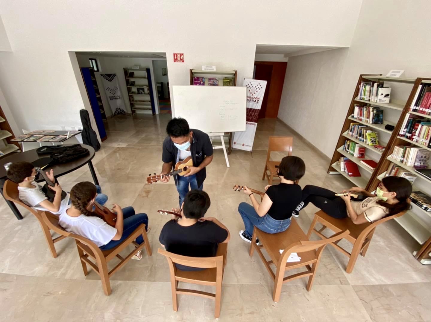 Por tanto, invitó a niños, jóvenes y adultos a inscribirse en los talleres artísticos y culturales que promueve el Centro Corazón Borraz: Ballet Clásico, Danzas Españolas, Break dance, Ori Tahití, Ajedrez, Bordado Tradicional Zoque de Chiapas, Piano, Guitarra, Piano, Ukelele, Dibujo y Pintura y Grabado.