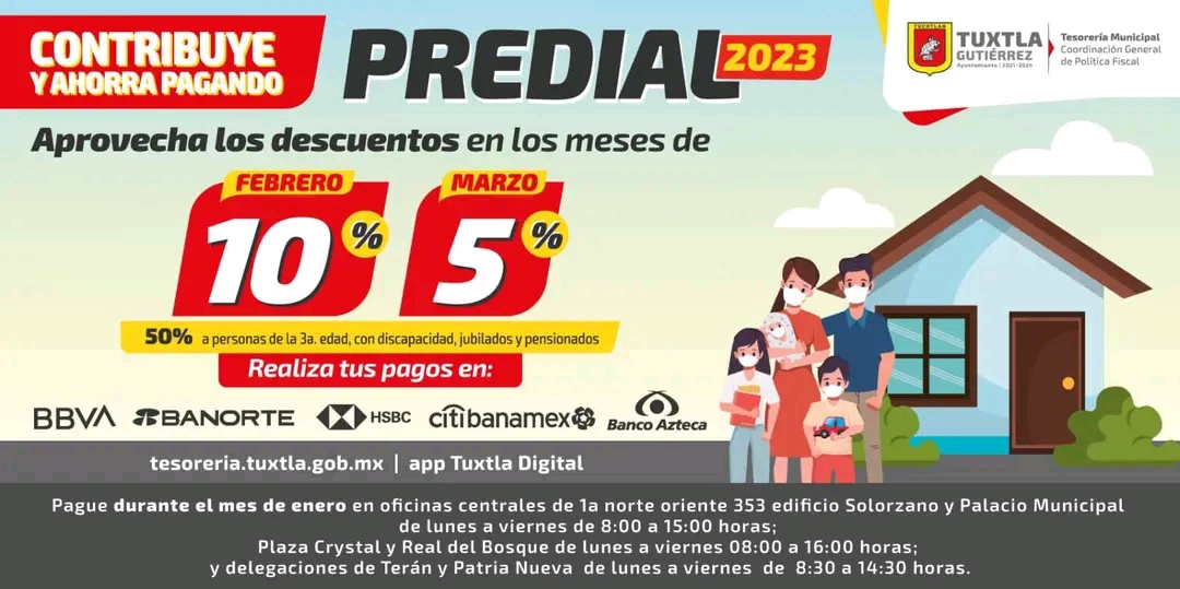 Por ello, Carlos Morales detalló que, los pagos podrán realizarlos en las oficinas centrales del edificio Solórzano, en un horario de 8:00 a 15:00 horas, en 1ª Norte Oriente número 353; en Plaza Cristal y Real del Bosque, en un horario de 8:00 a 16:00 horas; en los bancos de su preferencia, y Delegaciones Municipales de Terán y Patria Nueva, en un horario de 8:30 a 14:30 horas, todos de lunes a viernes.