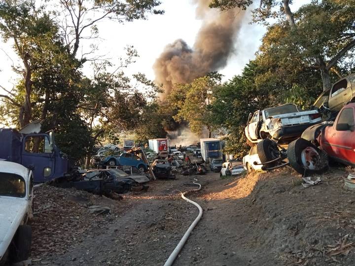 El siniestro se originó alrededor de las 17:50 horas del martes en donde reportaron trabajadores del mencionado negocio que se había iniciado un incendio de pastizal que por las ráfagas de viento se había propagado a vehículos que estaban en resguardo, al ver que no lo podían controlar llamaron al número de emergencias 911.