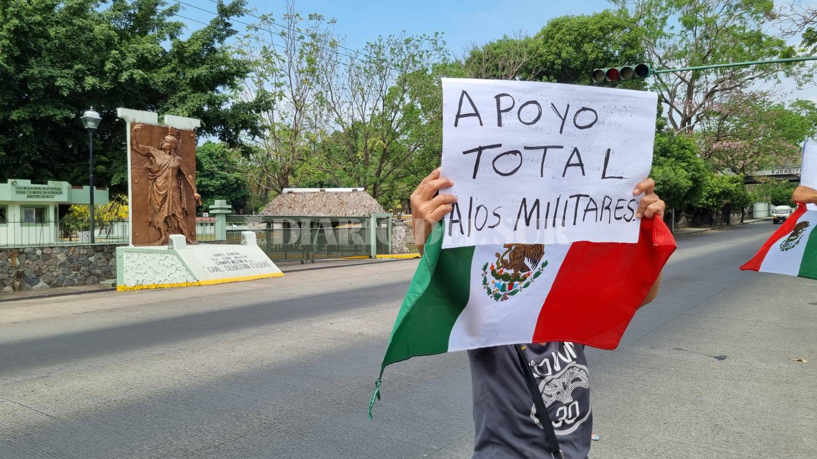 Los manifestantes piden el apoyo para los elementos del Ejército Mexicano, quienes son mandados a combatir a la delincuencia organizada y cuando los militares actúan abatiendo a sicarios estos son castigados.