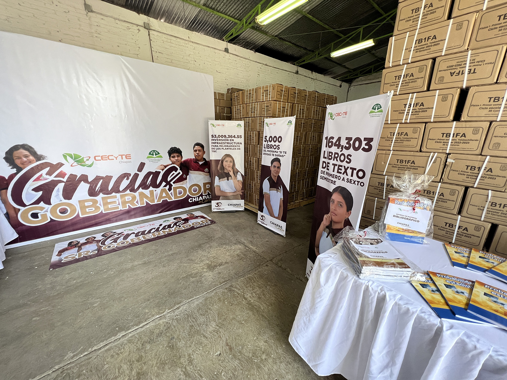 Por su parte, el director general del Colegio de Estudios Científicos y Tecnológicos del Estado de Chiapas (Cecyte Chiapas), Sandro Hernández Piñón, sostuvo que en esta ocasión se benefició a 12 planteles en materia de infraestructura y mantenimiento con una inversión de más de 3 millones pesos, de igual forma se entregaron 164 mil libros de textos y 5 mil libros del programa “Si te drogas, te dañas”, acciones que, dijo, son un acto de justicia social que permite el crecimiento y desarrollo de la comunidad estudiantil.