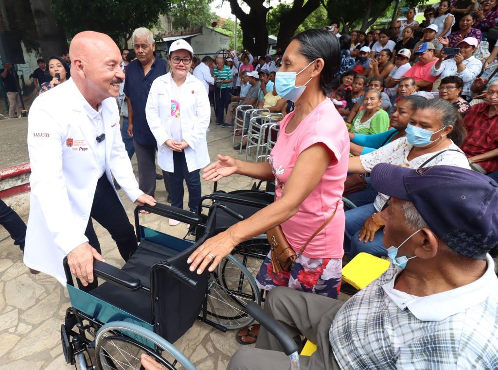 En ese sentido, el doctor Pepe Cruz realizó una entrega simbólica de apoyos ortopédicos en la colonia San Francisco, donde donó siete sillas de ruedas, cinco andaderas, 10 bastones y una silla de ruedas especial para adultos mayores o personas con alguna discapacidad motriz.