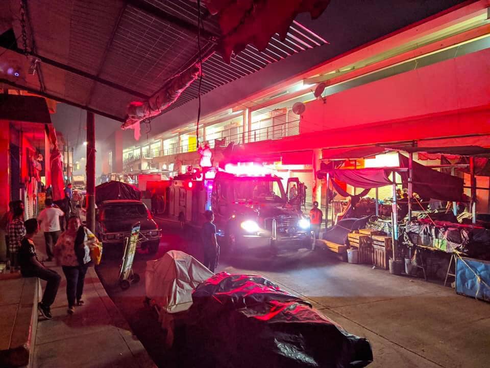 Los locatarios de uno de los centros de abasto más importante de la ciudad, hicieron el llamado de auxilio a los Bomberos de Tapachula y a Protección Civil Municipal, quienes llegaron al lugar del siniestro, ubicado en la planta alta del edificio.