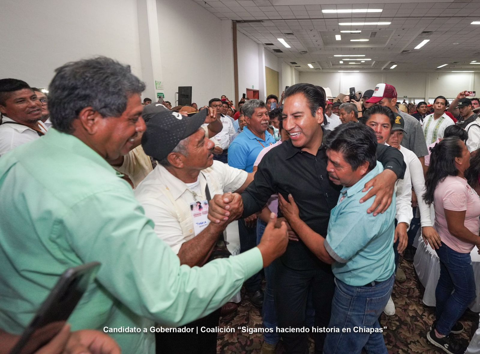 En un día histórico para las y los comisariados ejidales del estado, sostienen, por primera vez, un encuentro con un aspirante a la gubernatura y se reúnen con el candidato por la coalición “Sigamos Haciendo Historia en Chiapas”, Eduardo Ramírez Aguilar.