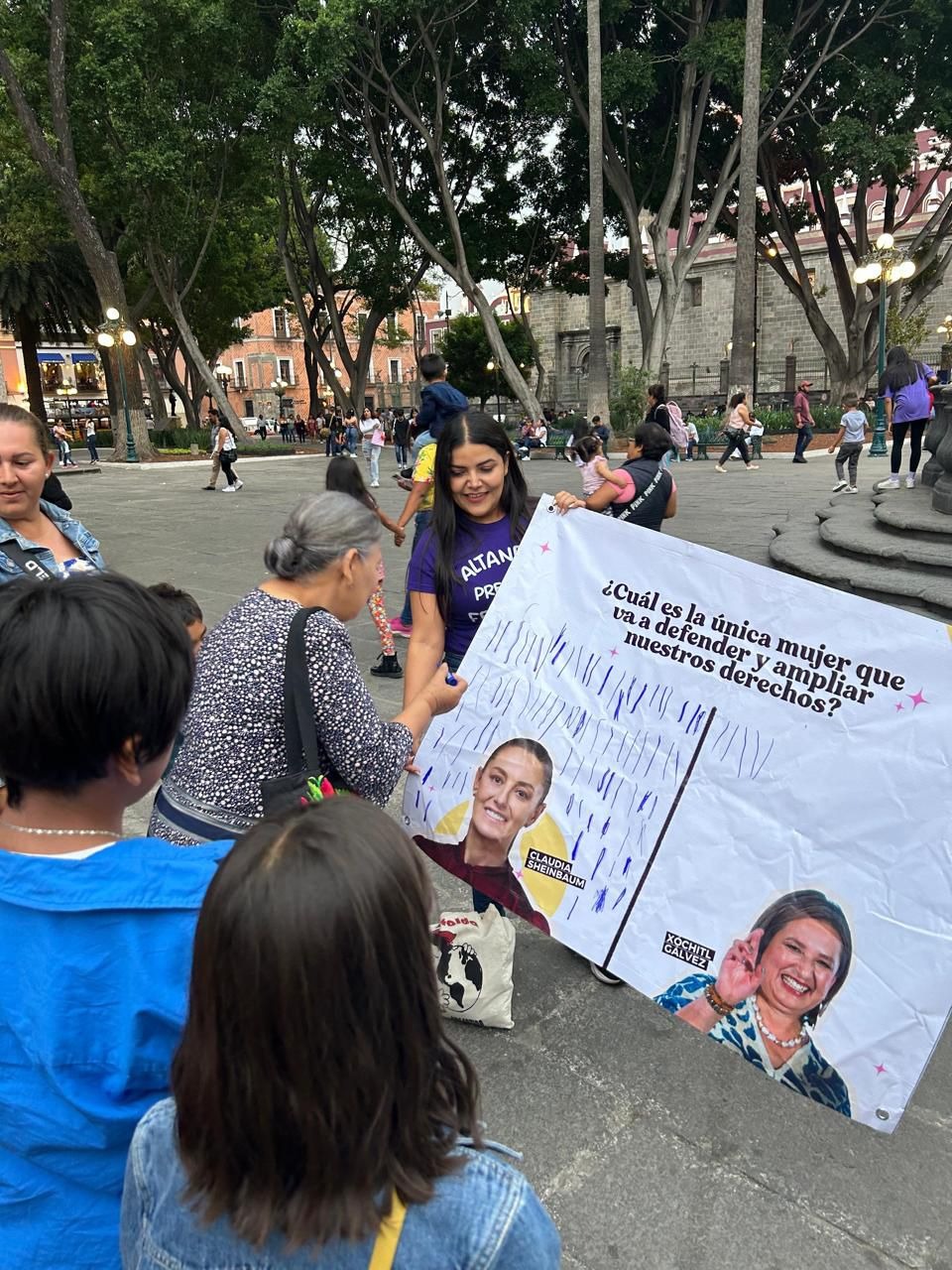En diferentes plazas públicas del país, de 27 estados de la República, integrantes del colectivo “Estamos Listas México” preguntaron a más de 2 mil mujeres de todas las edades ¿Cuál es la única mujer que va a defender y ampliar nuestros derechos?