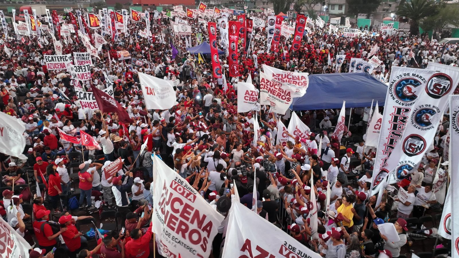 Por su parte, Azucena Cisneros Coss, candidata a presidenta municipal de Ecatepec, aseguró que este municipio está comprometido con la 4T y afirmó que se convertirá en el más Claudista de México el próximo 2 de junio.