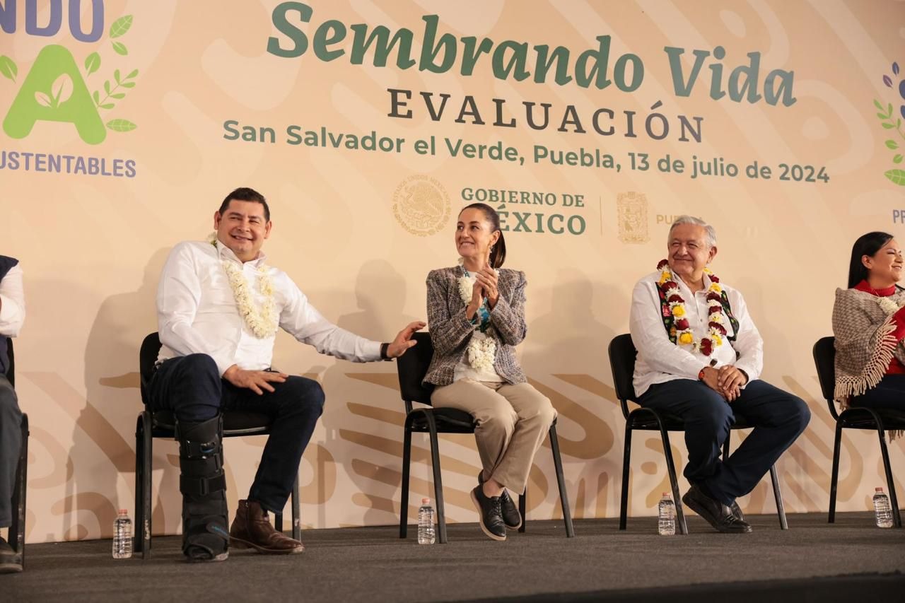 San Salvador El Verde, Puebla, a 13 de julio de 2024.- El programa Sembrando Vida no solo trae bienestar al pueblo de México, sino que se genera vida y patria, aseguró la virtual Presidenta electa, Claudia Sheinbaum Pardo, quien se comprometió a dar continuidad a este y todos los programas de Bienestar vigentes, esto durante una gira conjunta con el Presidente de México, Andrés Manuel López Obrador en el municipio de San Salvador El Verde, Puebla, para supervisar la entrega de estos apoyos.