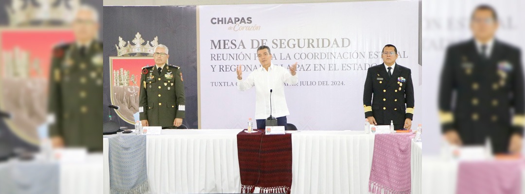 - En el marco de la Mesa de Seguridad Estatal de este jueves, el gobernador resaltó el saldo blanco en delitos de alto impacto en Chiapas